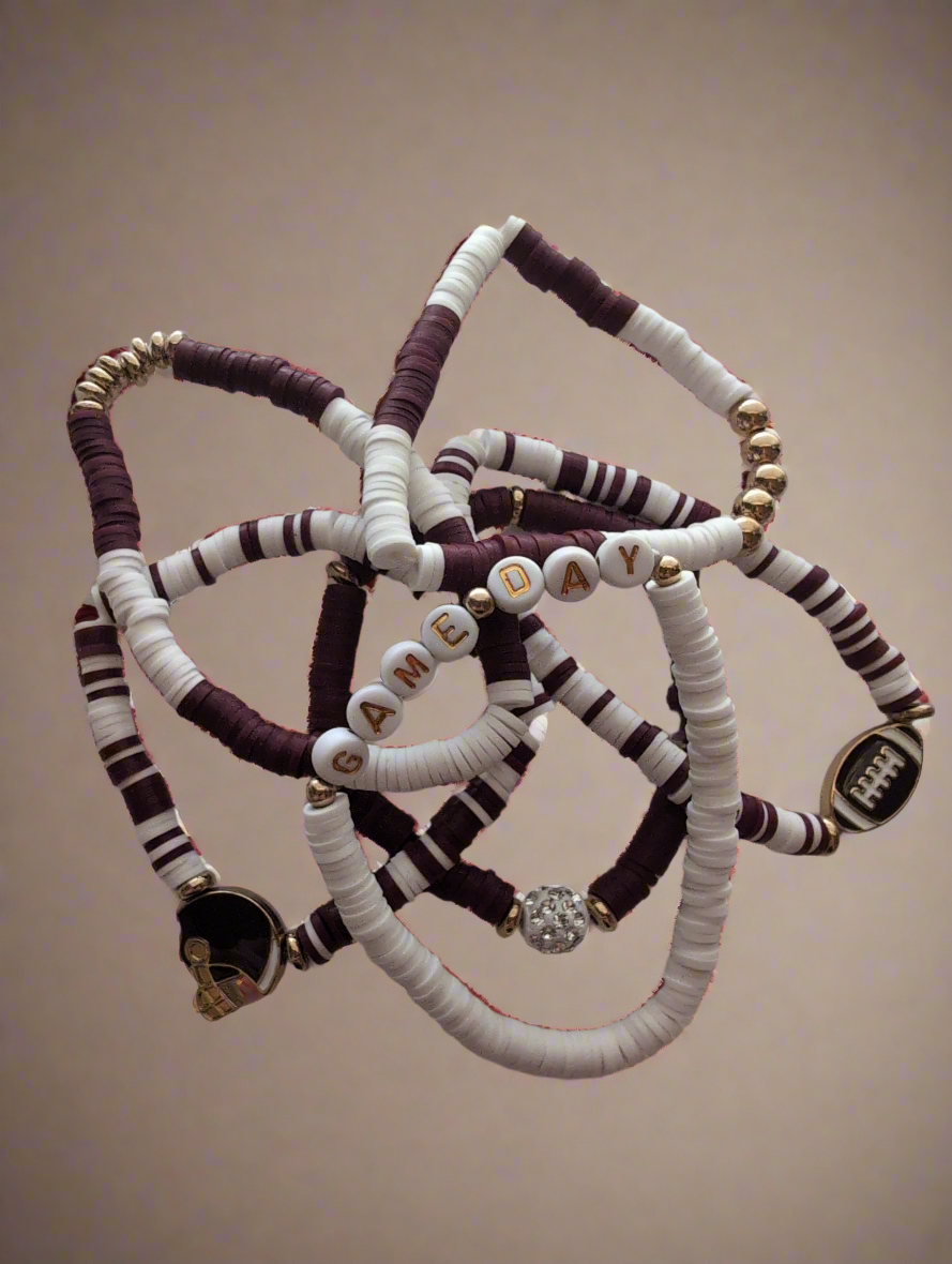 Crimson and White Football Bracelet Set Style # 1297