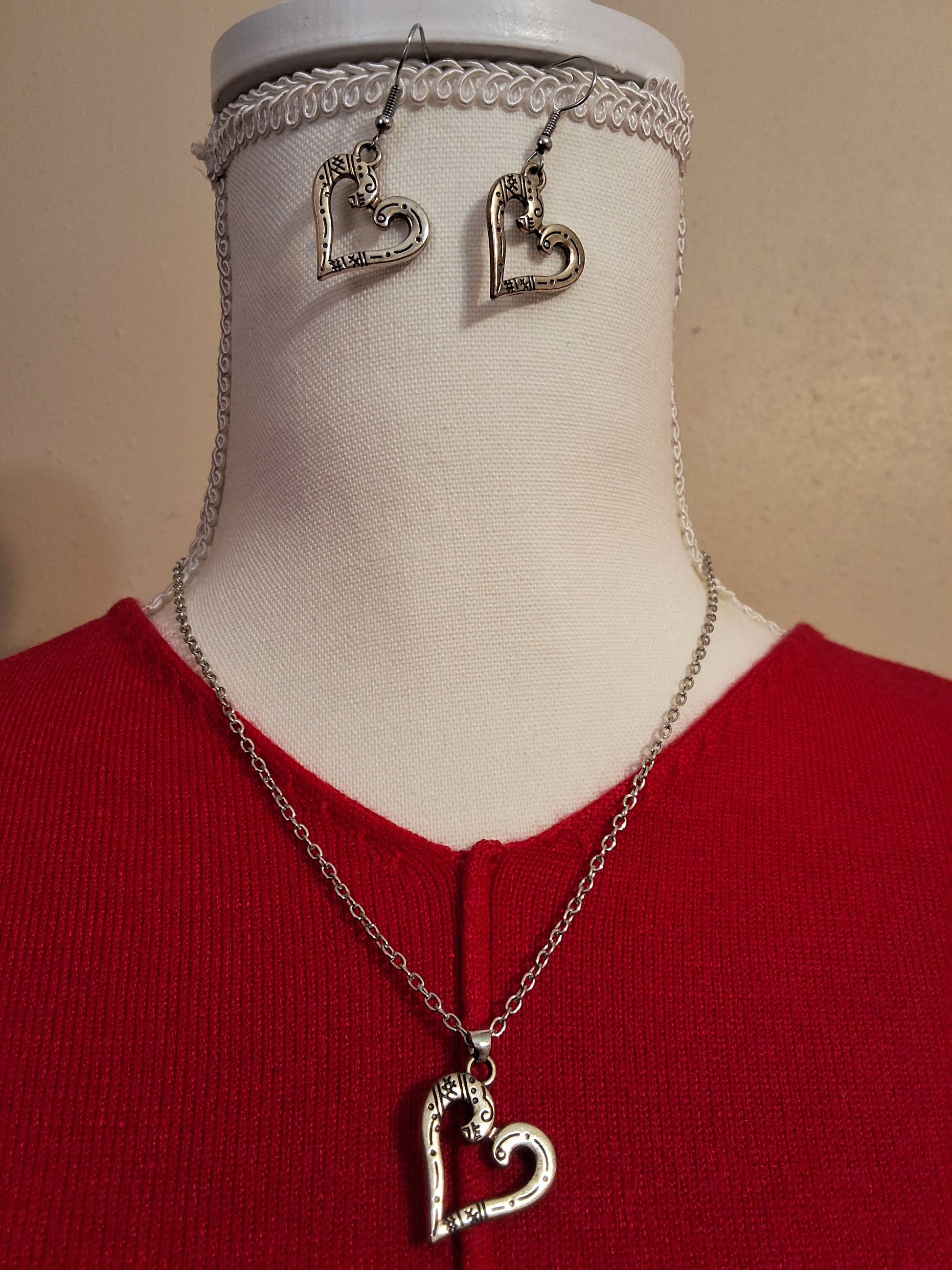 Silver Heart Necklace with Earring Set Style # 608