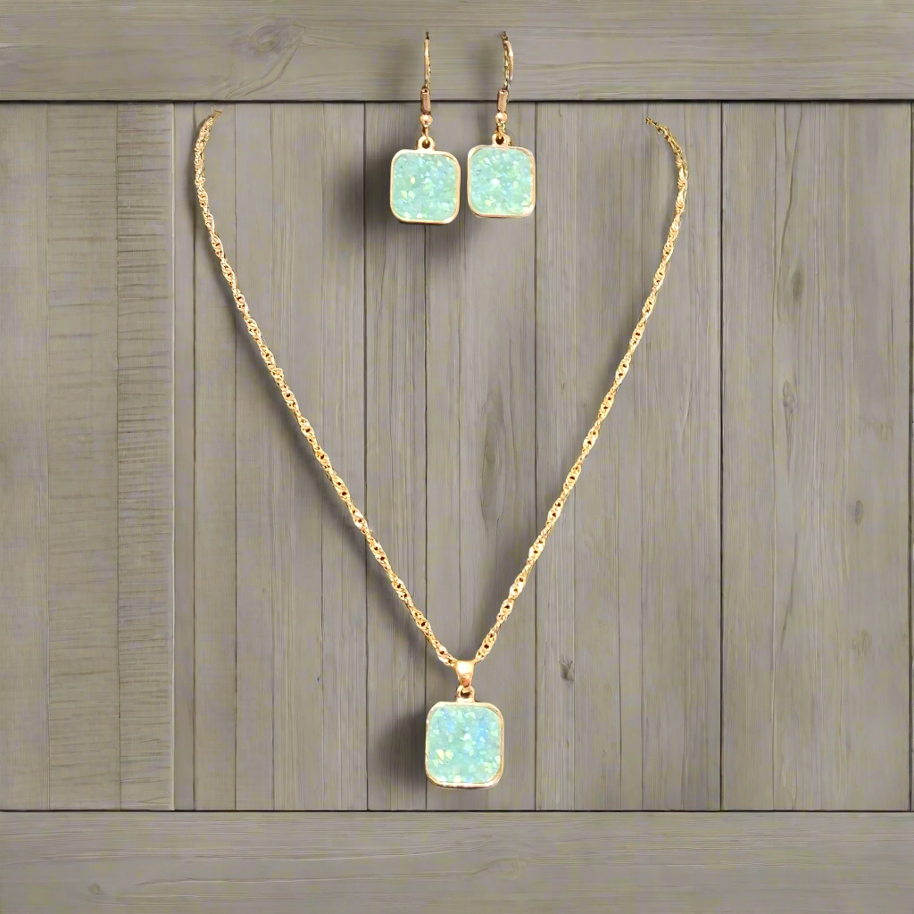 Teal Necklace with Earrings Style # 613